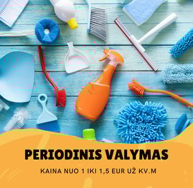 Papildomai pagal susitarimą: Orkaitės, mikrobangų krosnelės, šaldytuvo ir spintelių vidaus valymas.